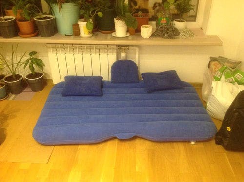 Thinking of camping out the weekend? Planning a road trip but pondering upon the stressful overnight drive? With Bedzy™ you will not have to worry about it anymore. It is an inflatable air mattress specially designed for cars and travel purposes that is made to fit the second row of any car and instantly converts the seating area into a comfortable bed. The resting pillow can be kept at the front of the seat to support the bed while you sleep over it.