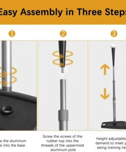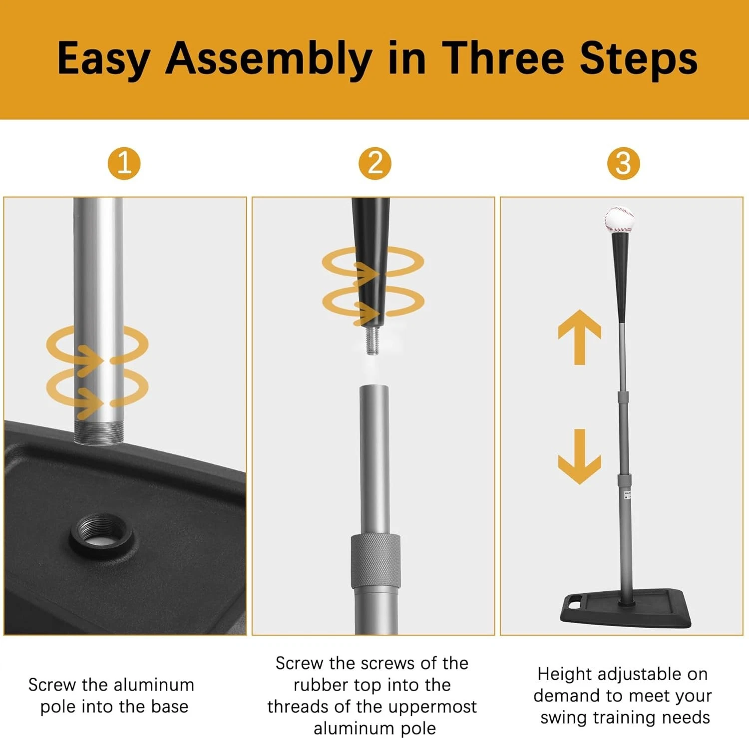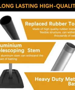 Strong & Long-Lasting – Built with a rubber top, aluminum stem, and heavy-duty metal base, this batting tee provides durability and stability. The rubber top grips the ball firmly, the aluminum stem withstands strong impacts, and the weighted base keeps it from tipping over.