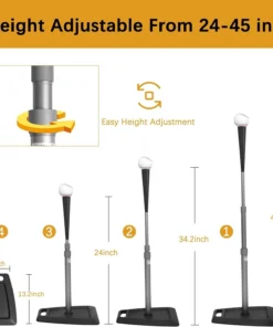 Train like a pro and improve your swing with our heavy-duty batting tee. Built with a durable rubber top, aluminum stem, and a weighted metal base, this tee provides unmatched stability and strength for every practice session. The telescopic design adjusts from 24″ to 45″, making it suitable for both kids and adults. Whether you’re practicing in the backyard, at the field, or indoors, this portable and easy-to-assemble batting tee is perfect for players of all skill levels.