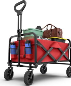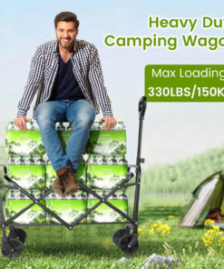 - Heavy-Duty Frame & All-Terrain Wheels – Built with a strong steel frame and wide 5″ wheels, the wagon can carry up to 330 lbs smoothly across all surfaces.