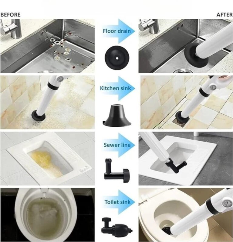 - Fast & Powerful Unclogging – Harnesses the force of compressed air to clear pipes quickly and effectively, removing stubborn clogs without effort.