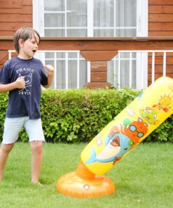 Keep your child active and entertained at home with the Kids Inflatable Punching Bag. Designed with safety in mind, this inflatable boxing bag allows kids to punch and kick without risk of injury. Standing 49 inches tall, it’s the perfect size for growing children and features fun cartoon sea creature designs to engage kids of all ages.Unlike traditional punching bags, this kids punching bag comes with a tumbler base that can be filled with water, ensuring stability even during energetic play. Lightweight and portable, it’s suitable for both indoor and outdoor use. Available in vibrant blue and yellow, this punching bag encourages your child to stay active while having fun.