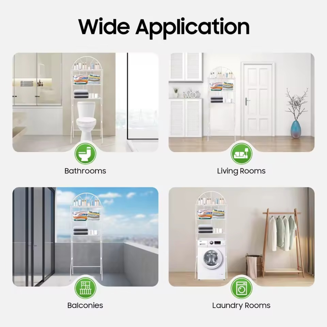 - Space-Saving Storage: Three open shelves provide plenty of room for organizing daily essentials, while the tall bottom space easily fits over most toilets or washing machines to save valuable floor space.