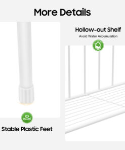 - Durable & Moisture-Resistant Construction: Made from high-quality iron and plastic with a baked-on paint finish, this shelf resists rust, warping, and moisture—ideal for long-term use in damp bathroom environments.