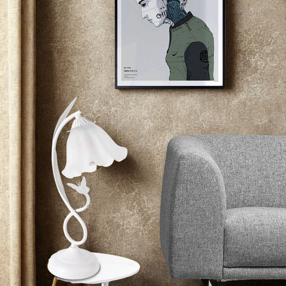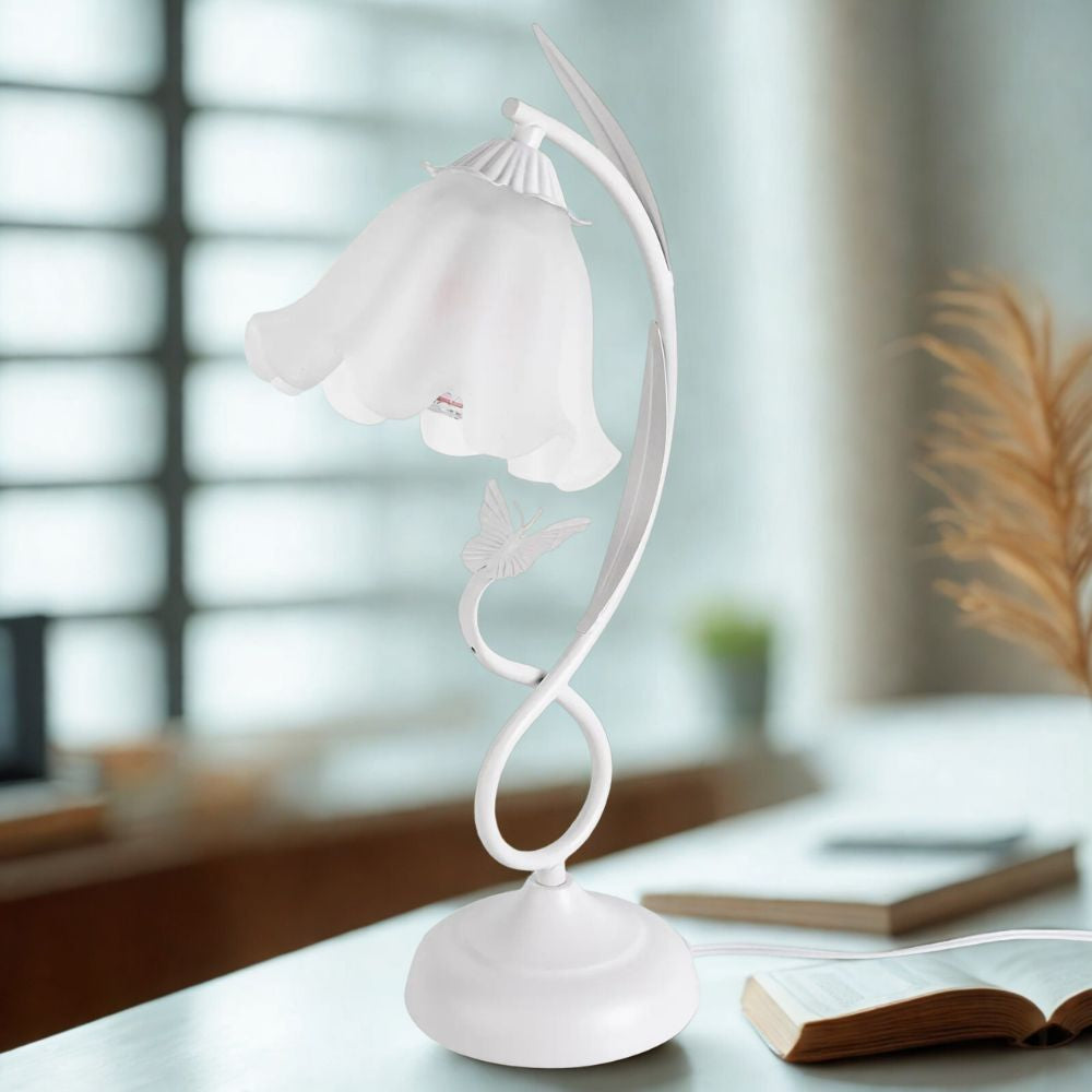 - Stylish Flower-Shaped Design: Unique floral shape paired with a white glass lampshade adds elegance and decorative charm to any tabletop or interior setting.