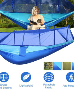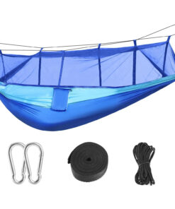In need of a sturdy camping hammock that enables you to enjoy the outdoors while you lounge under the trees? Our exclusive portable hammock was designed to provide you with a snug and comfy space to rest while protecting you from outdoor elements. Constructed with special fabric, our heavy-duty hammock with mosquito net seamlessly attaches onto any tree. Plus, the sleeping hammock is fitted with a high-density mesh material that prevents little critters and mosquitoes from entering your resting space.