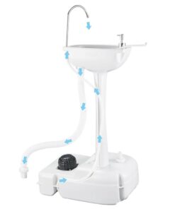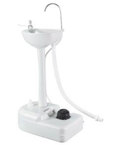 Equipped with a large water tank, the portable handwashing station can carry up to 4.4 gallons of water. It also comes with a tube that you can attach to a waste tank so that you don’t pollute the outdoors with toxic waste.