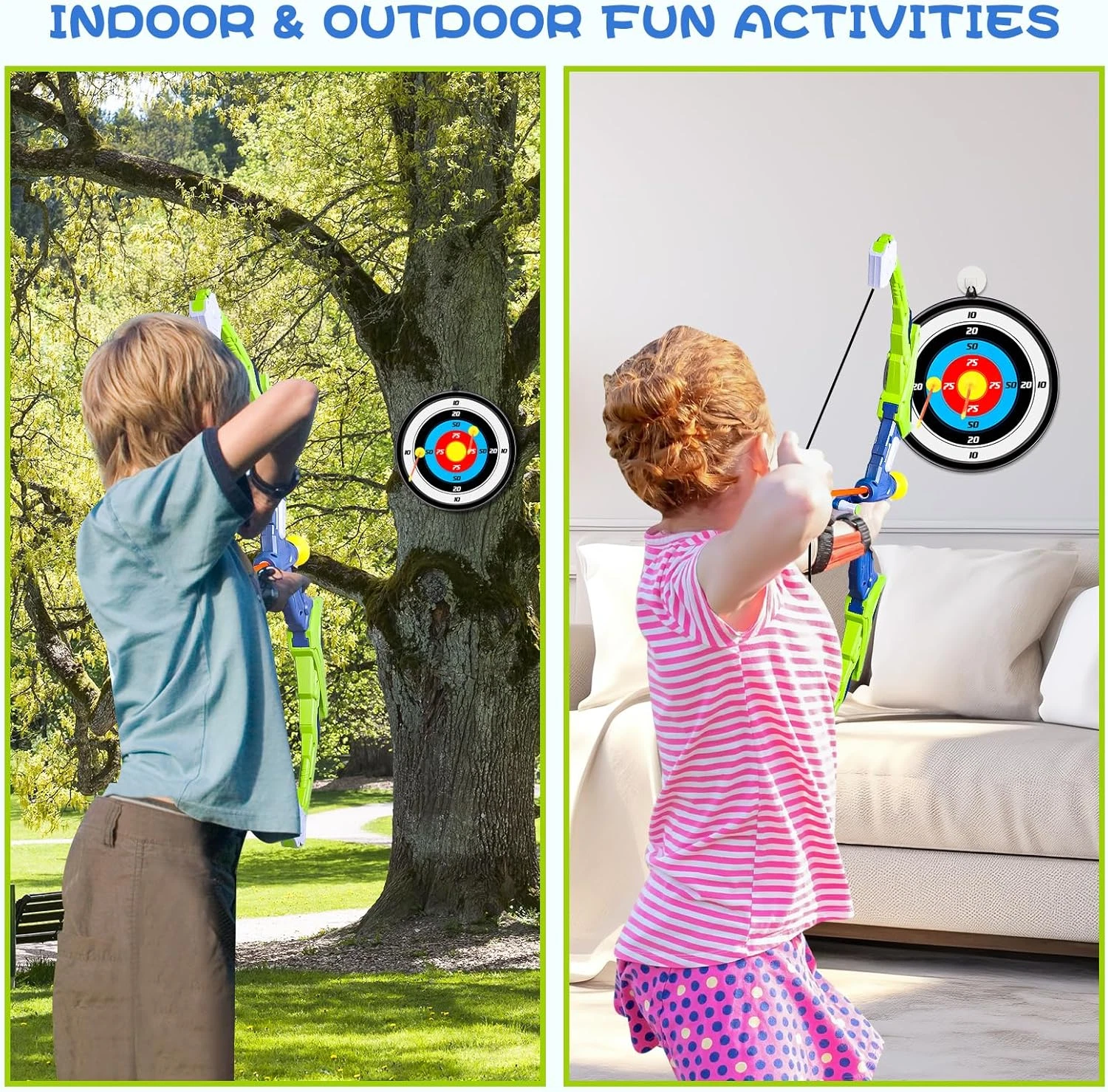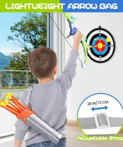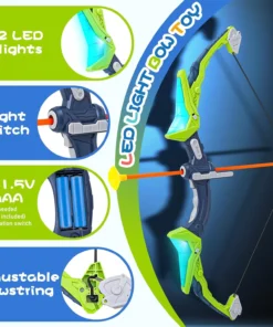 - Complete Archery Experience: Includes LED light-up bow, three suction cup arrows, quiver, and scoring target to give kids the full fun of shooting and aiming.