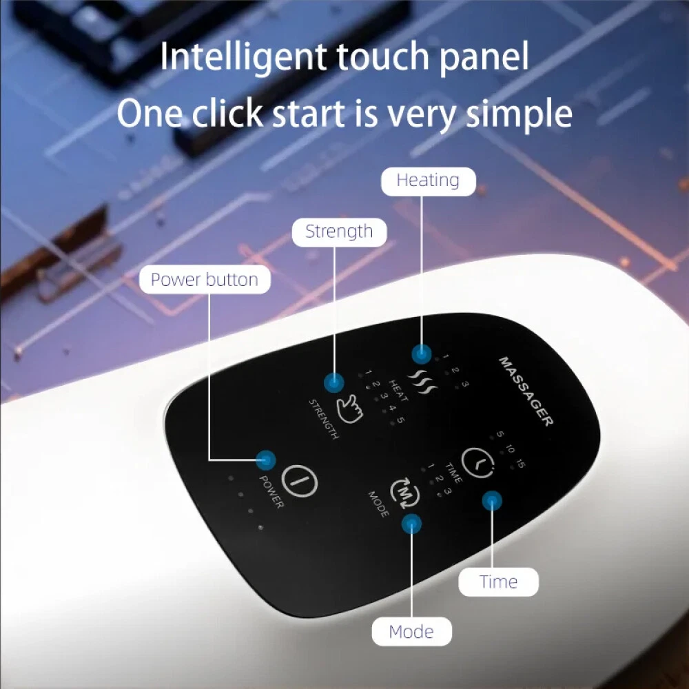 Equipped with adjustable intensity levels, multiple massage modes, and three hot compress temperatures, this hand massager allows you to customize your massage to your exact needs. The intelligent touch screen and one-button operation make it easy to use, while safety features like the SOS pressure relief button ensure worry-free use. Additionally, it can enhance the absorption of hand creams for deeper skin nourishment, leaving your hands feeling soft, smooth, and revitalized.